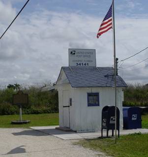 When they finally got to Ochopee they could not believe their eyes! The Post Office was so tiny! It was about the size of a small bathroom! They found out that it was the smallest post office in the United States. It was originally built as a storage shed, but when the regular Post Office burnt down in 1953, they moved the Post Office into the shed, and it has been there ever since. It is probably the most popular Post Office in the country!
