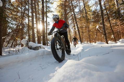 The Area has around 45 miles of groomed snow trails that can be used for fat biking in the winter. To groom the trail, special machines that pack the snow are pulled along the trails. This leaves the trails covered with firm snow that is perfect for fat biking!
