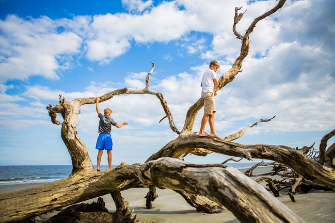 After reading about Driftwood Beach, Kris and Kell were eager to get out of the car and explore this beach. Kell said, “Even though we are not going swimming, we still need to put sunscreen on all our exposed skin, the sun is very strong when it reflects off the ocean!”