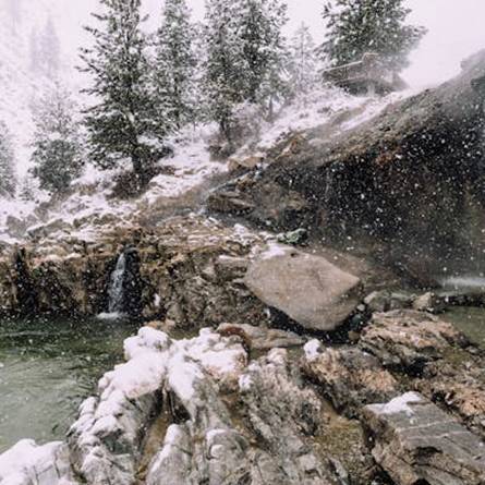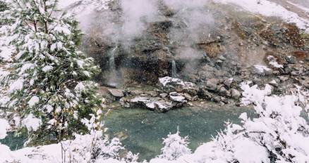 The driver dropped them off at Kirkham Hot Springs Park and said that he would pick them up at 2:00 and take them back to the Big Potato Hotel. Kris and Kell walked carefully through the fog and down a long set of wooden stairs. When they got to the bottom of the stairs, they could not believe their eyes! They were surrounded by pools of hot water! These pools were fed by hot springs, and there were even some hot waterfalls coming down from the cliffs above! Now Kris and Kell understood why they needed their swimsuits. They quickly took off their heavy coats and their warm winter clothes and jumped into the nearest pool! The water was so warm and felt so good! When they stood under the waterfalls, it felt like they were in a warm shower!